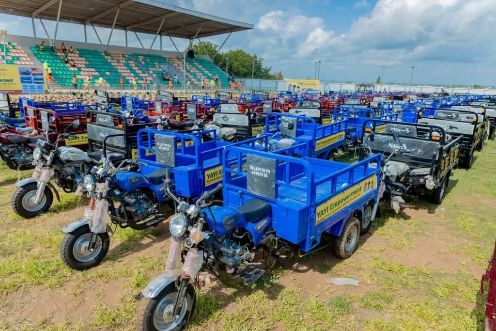 Items distributed included tractors, fertilizers, water pump, insecticides, sprayers, cassava stem among others.