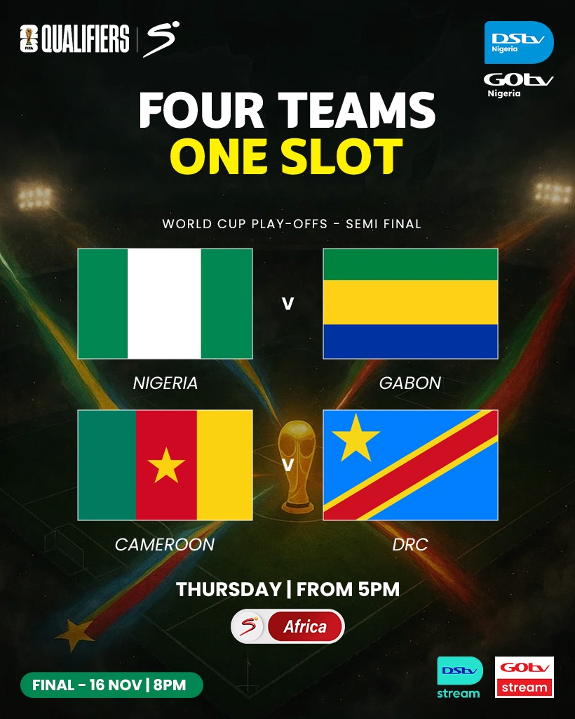 After missing out on the continent’s nine automatic qualification spots, the four best second-placed teams from the group stage – Nigeria, Gabon, DR Congo, and Cameroon- will compete in the semi-final matches on Thursday, with the winners advancing to Sunday’s final. The champion will then progress to an intercontinental play-off against a team from another confederation for a ticket to next year’s World Cup in Canada, Mexico and the United States.